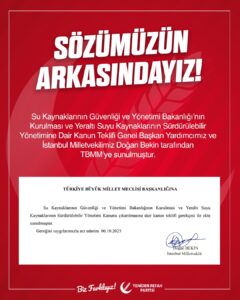 Doğan Bekin, teklifin yalnızca bir yönetim reformu değil, “su bağımsızlığı” projesi olduğunu vurgulayarak açıklamasını şu sözlerle tamamladı: