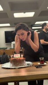 Basın Platformu üyeleri, Arzu Samat’ın bu başarısını kutlama pastası keserek kutladı ve “Basın Platformu olarak üyelerimizin üretkenliğinden gurur duyuyoruz” mesajını paylaştı.