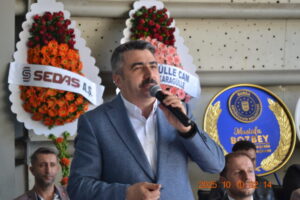 “Sayın milletvekillerimiz, Yıldırım Belediye Başkanım, AK Parti, Chp İl Başkan temsilcilerimiz,Bursa Büyükşehir Belediye Başkan yardımcım, Milliyetçi Hareket Partisi İl temsilcim, Kıymetli misafirler değerli hemşehrilerim hoş geldiniz fuarımıza sefalar getirdiniz. Sayın milletvekillerim değerli protokol Elazığlılarımızın yöresel ürünlerinin Bursa’da yaşayan Elazığlılar ve Bursalı hemşehrilerimizle buluşturmak amacıyla düzenlemiş olduğumuz yöresel ürünler Elazığ Festivali katılımınızla bizlere güç verdiniz onur verdiniz, hepinize Elazığlı hemşehrilerim adına ayrı ayrı teşekkür ediyorum. İnşallah güzel bir etkinlik gerçekleştirmiş olacağız katılımınızdan dolayı hepinize ayrı ayrı teşekkür ediyorum.Siyasetin sıcak olduğu bir dönemde çalışmalarınızın çok yoğun olduğunu davetiyelerinizi verdiğimiz süreçte sezinledik.Bizi kırmadınız aramıza katıldınız hepinize ayrı ayrı teşekkür ediyorum, sağ olun var olun hemşehrilerime de katılımlarından dolayı teşekkür ediyorum, hepinize teşekkür ediyorum İnşallah güzel bir fuarımız olacak.