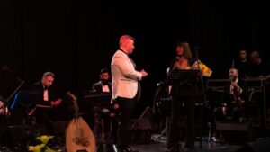 Bursa’nın yakından tanıdığı müzik eğitmeni, besteci ve koro şefi Bahadır Sevik; keman, gitar, kanun, klarnet, klavye, darbuka ve bateriden oluşan orkestronun eşlik ettiği gecede, geçmişten günümüze uzanan Türk sanat müziği eserlerinin yanı sıra sevilen modern besteleri de “Zamansız Şarkılar” temasıyla seslendirdi.