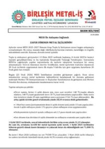 2025–2027 Grup Toplu İş Sözleşmesi, metal sektöründe çalışan yüz binlerce emekçi açısından ekonomik güvenceyi güçlendiren, sosyal refahı artıran ve geleceğe dönük umutları pekiştiren bir mutabakat olarak kayıtlara geçti.